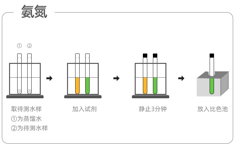 分析过程中只需将规定量的水样注入试剂或将试剂溶解在规定量的水样中,按程序操作后,将样品瓶放入分光光度计或比色计中(预存有标准曲线)直接读数便可得到精确的测试结果。