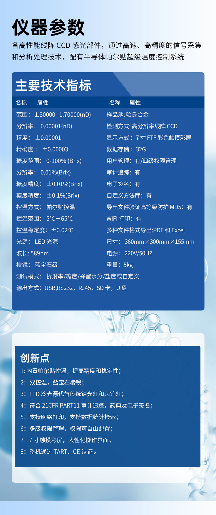 糖度精度: ±0.01%(Brix)